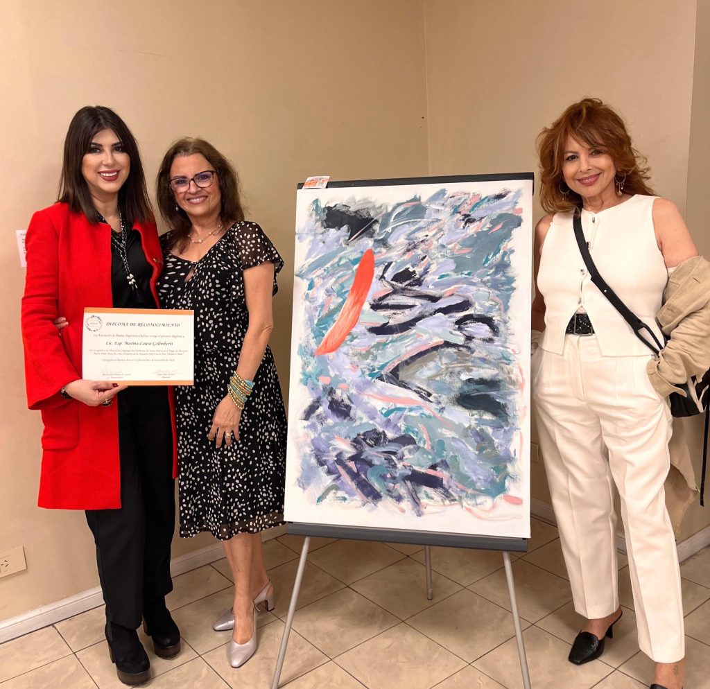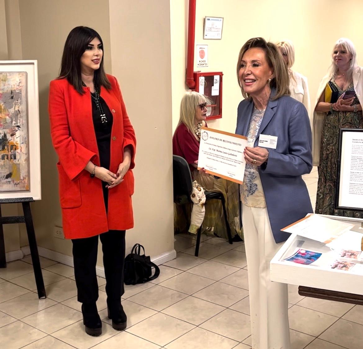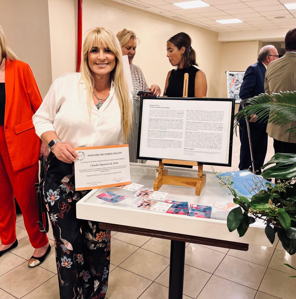 La Asociación de Damas Argentino-Chilenas distingue a la Gestora Cultural con un diploma de honor por su curaduría de «Desde el Alma», una muestra colectiva que celebró la creatividad de cuatro destacadas artistas plásticas